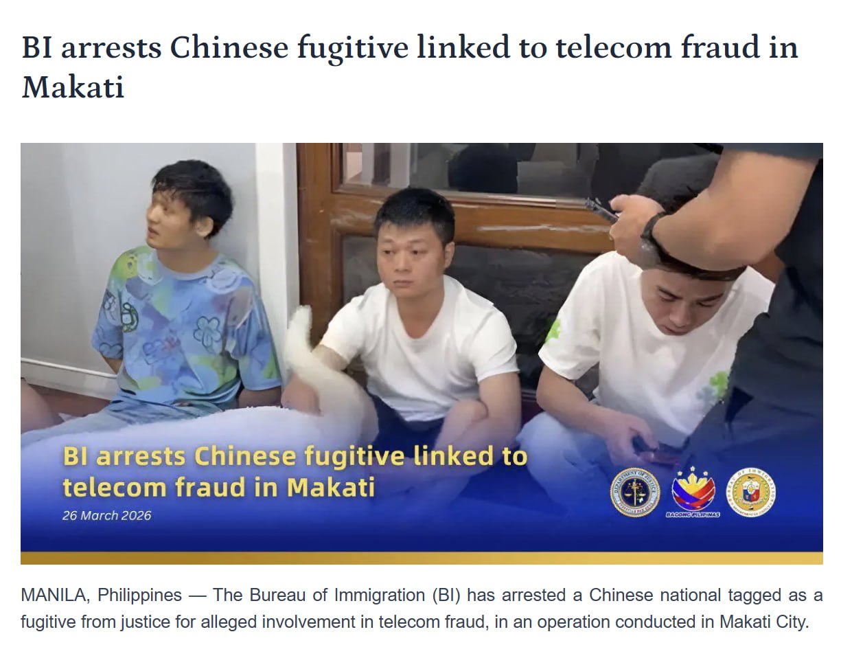 菲律宾移民局(BI)近日在马卡蒂市展开执法行动,成功逮捕一名被中国司法机关标记为逃犯的中国籍男子,该男子涉嫌参与电信诈骗犯罪活动。