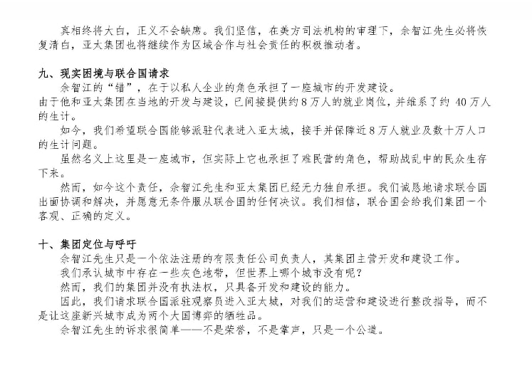 亚太集团正式发布的《佘智江立场与司法请求的公开声明》系统阐述了以下关键方面,力求以详实证据和逻辑论证澄清误解: